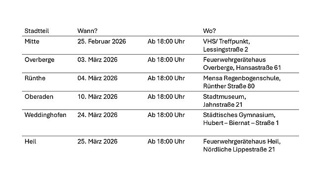 In den vergangenen Monaten haben sich bereits viele Bürgerinnen und Bürger online sowie bei Veranstaltungen in den Stadtteilen eingebracht. Dabei wurde deutlich, wie vielfältig die Perspektiven auf Bergkamen sind.