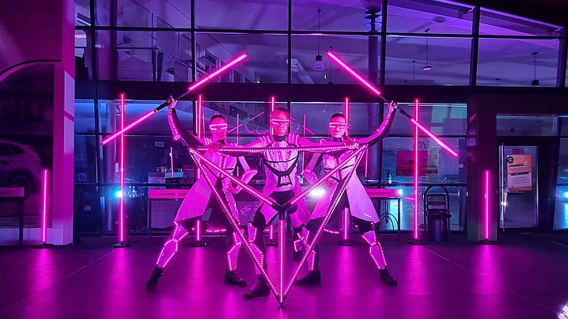 Bereit für die nächste Stufe der visuellen Evolution? Freuen Sie sich auf Europas führenden LED-Showact – eine Symbiose aus Licht, Technologie und künstlerischer Vision, wie sie nur aus der Zukunft stammen kann. Erleben Sie eine spektakuläre Lichtshow, in der Laser- und LED-technologie von morgen auf präzise inszenierte Choreografien und futuristische Requisiten trifft. Jeder Lichtimpuls, jede Bewegung ist Teil eines perfekt orchestrierten Gesamtkunstwerks, das die Grenzen zwischen Mensch, Maschine und Magie verschwimmen lässt. Eine Show wie ein Datenstrom aus Licht – schnell, elegant, elektrisierend.