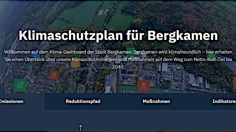 Die Stadt Bergkamen hat ihre digitale Klimaschutzplanung offiziell veröffentlicht und setzt damit einen wichtigen Schritt auf dem Weg zu einer transparenten und nachhaltigen Zukunft. In der Metropole Ruhr ist Bergkamen aktuell die fünfte von 53 Kommunen mit einer solchen digitalen Planung; weitere Städte bereiten die Veröffentlichung vor. Technischer Beigeordneter der Stadt Bergkamen, Jens Toschläger erklärt, „Ich freue mich sehr, dass wir es in partnerschaftlicher Zusammenarbeit mit dem RVR geschafft haben, als eine der ersten Kommunen im Verbandsgebiet dieses Tool einzusetzen und unsere Klimaschutzarbeit in Bergkamen für die Bürgerinnen und Bürger transparent darzustellen“.