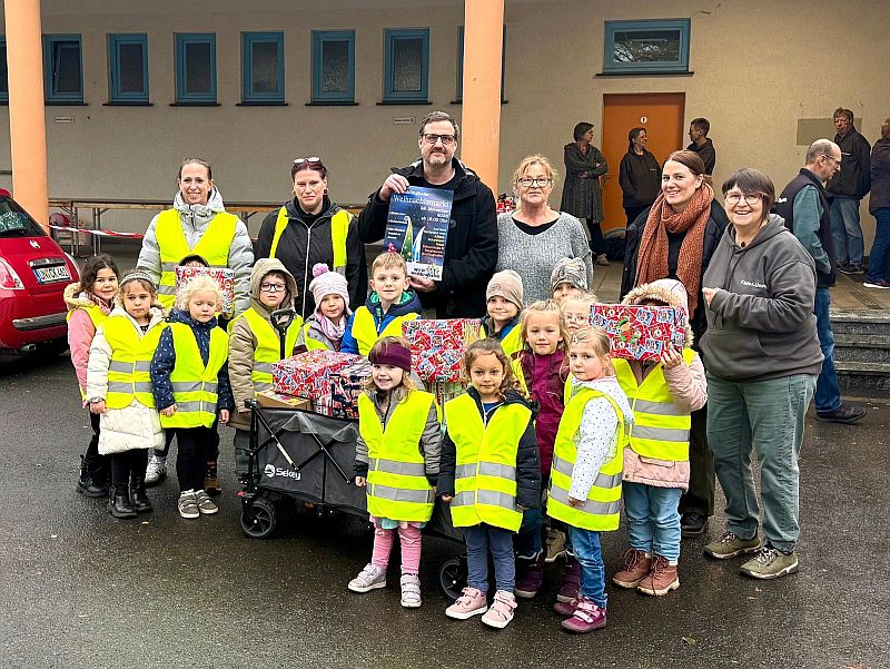 Die Kita „Grüner Weg“ spielte dabei eine besondere Rolle: Die Kinder und Erzieherinnen hatten im Vorfeld die Geschenke liebevoll verpackt. Für den Transport zur Tafel wurde ein Bollerwagen genutzt, mit dem die Präsente durch den Stadtteil gezogen wurden – eine Aktion, die bei Beteiligten und Passanten gleichermaßen für Aufmerksamkeit sorgte.