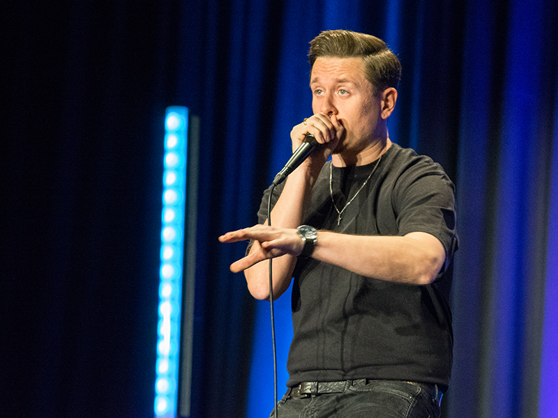 Katharina Block sprang für eine erkrankte Kollegin ein und servierte als alte LOL-Bekannte schon mal Gehörtes mit mütterlichem Spielplatz-Traum, Sandkuchen-Buffet mit Katzenkacke und Dick-Pic-Sehnsucht. Danach verwandelten sich Feuerwehrmann Frank auf der Bühne und Jochen als 79-jähriger reicher Frauenschwarm in der 2. Reihe zu durchaus talentierten Nebendarstellern. Dann übernahm Thomas Schmid mit seiner Bergkamen-Premiere das Ruder, heizte den Regional-Krieg mit Kamener-Kreuz-Psychologie noch ein wenig an und versuchte mit einer missratenen meditativen Therapie vergeblich, die Midlife-Krisis angesichts der Deutschland-Post vom Rentenbund wegzupuzzlen. Gut, dass man beim Beat-Box-Exzess von Kevin O’Neal eigentlich nur noch über das Kevin-Trauma und die Frage nachdenken musste, wie so viele Geräusche gleichzeitig aus allen Körperöffnungen gewaltige Rhythmen produzieren können.