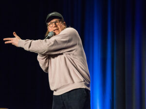 In der zweiten Runde mit umgekehrter Reihenfolge waren viele schon an ihren Zwerchfell-Grenzen angelangt. Manche Zuschauerin lachte sich derart in Ekstase, dass auf der Bühne gar nichts mehr ging. Kein Wunder, kam doch nicht nur die Körbchen-Größe aus der 2. Reihe zur Sprache. Mit dem Mikro unternahm der Beat-Boxer eine beeindruckende Körper-Rundreise durch seinen „angewachsenen Instrumenten“, die im Atemlos-Marathon und der Insel mit zwei Bergen mündete. Der Kölner Kollege strandete in greiser Vorfreude im Furzalter an der Kasse, wo letztlich doch wieder SB-Terror mit Probezeit und Scan-Kriminalität lauerten. Mit der einzigen Bühnen-Frau gab es zum Abschluss noch eine Portion Menopausen-Hormon-Horror mit Klapprad- und sexistischen Kuschel-Exkursen.