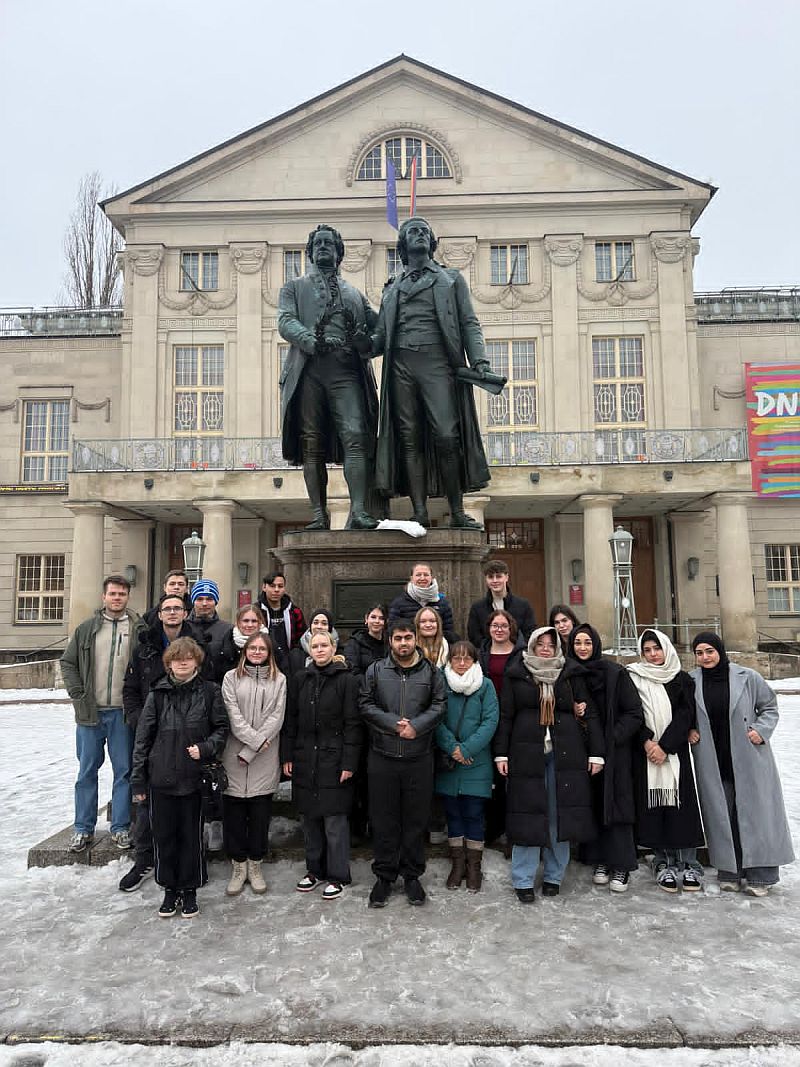Als Ausgleich und Kontrast wurde auch die Kulturstadt Weimar besucht. Dort wandelten Lehrende und Lernende nicht nur auf den Spuren von Goethe und Schiller, sondern erkundeten auch die Auseinandersetzung der Weimarer Bürgerschaft mit den grausamen Geschehnissen während der Zeit des Nationalsozialismus.
